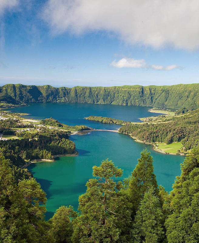 L’île principale, São Miguel, concentre à elle seule une grande diversité de panoramas, entre lacs volcaniques, sources chaudes et collines verdoyantes. Le site de Sete Cidades, avec ses deux lacs aux couleurs contrastées, est l’un des plus emblématiques de l’archipel.